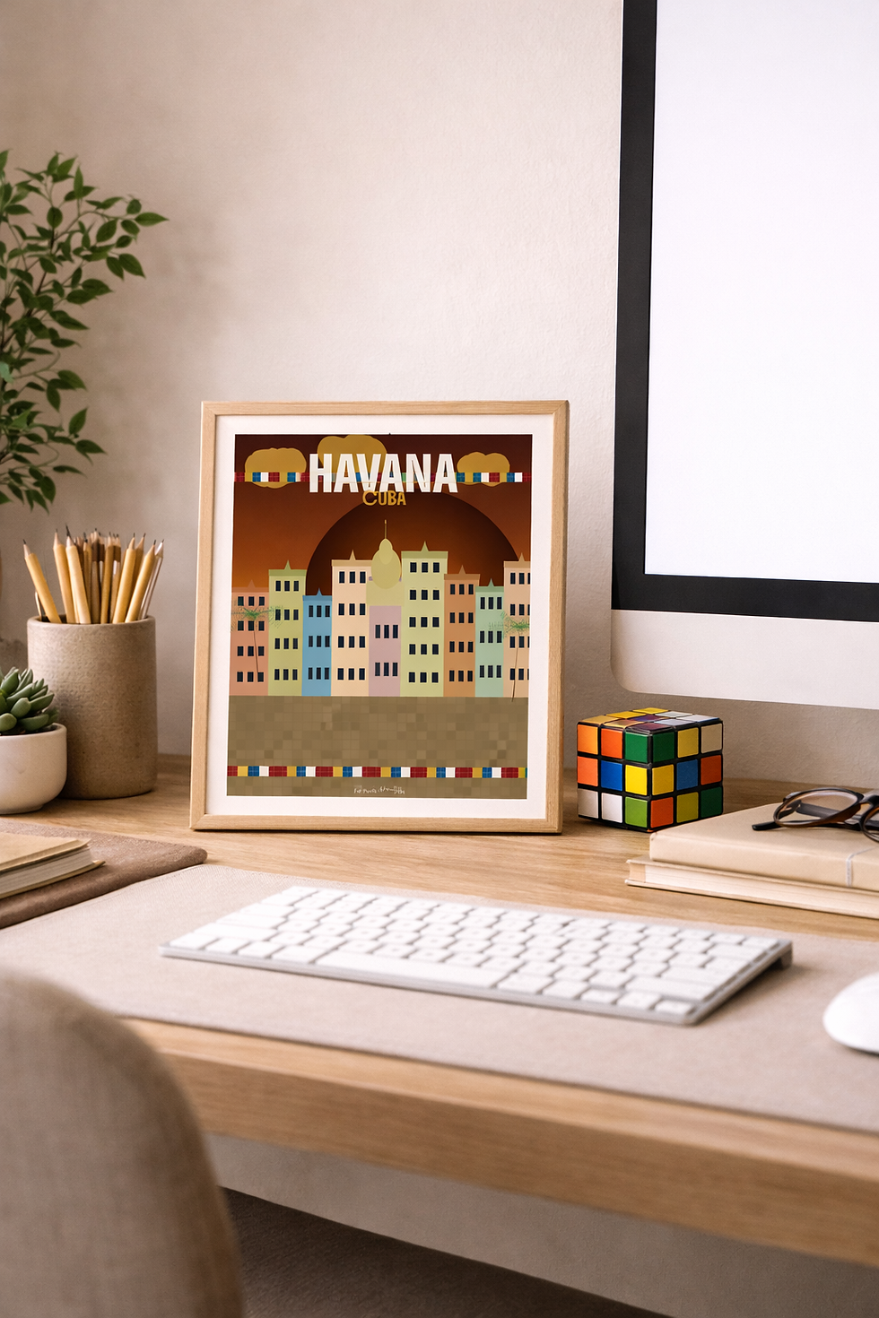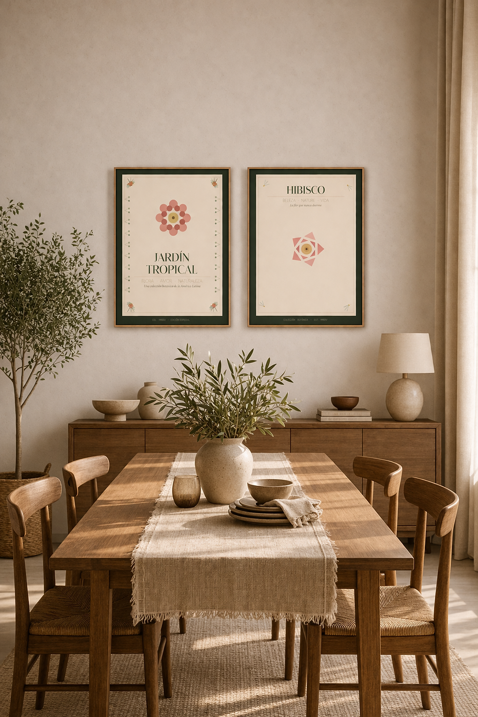 Three flowers facing the sun. Bold orange leaves reaching toward the sky. A garden alive with warmth, colour and abundance. This is the tropics in full bloom generous, unapologetic, magnificent. En Flor is the closing piece of the Trópico Collection by 4youii original art celebrating the colours, flora and warmth of Latin America and the Caribbean. Collect all four: Bajo el Sol, Orilla del Sol, Bajo la Luna and En Flor.